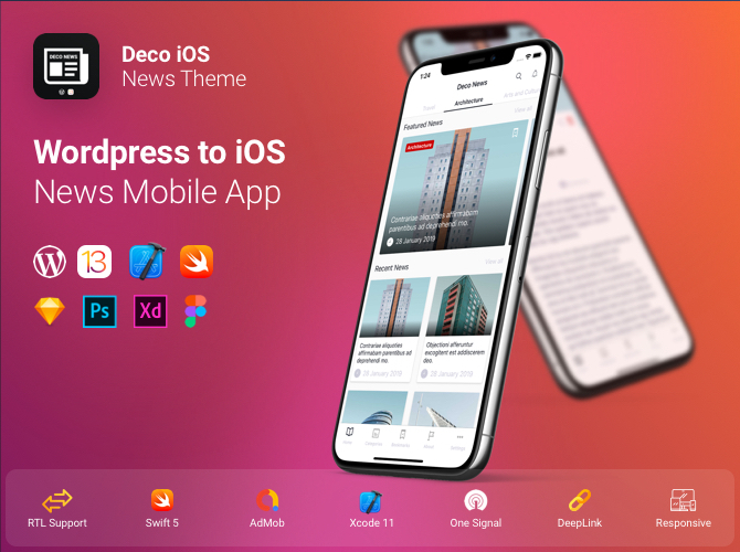 Convert your WordPress news site or blog to native iOS mobile application. Built for iOS 13 with Swift 5 and Xcode 11. A lot of features, RTL support, AdMob & OneSignal integration, DeepLink & Responsive design.